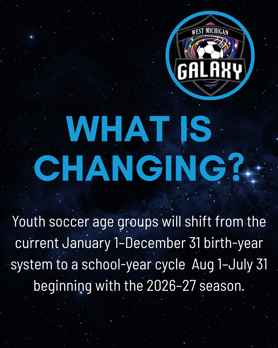 With the upcoming changes to U.S. Soccer’s age-group guidelines, we know many families and players have questions, and that some details may feel unclear at first. This update is meant to help explain what’s changing, why it’s changing, and how it may affect players moving forward.