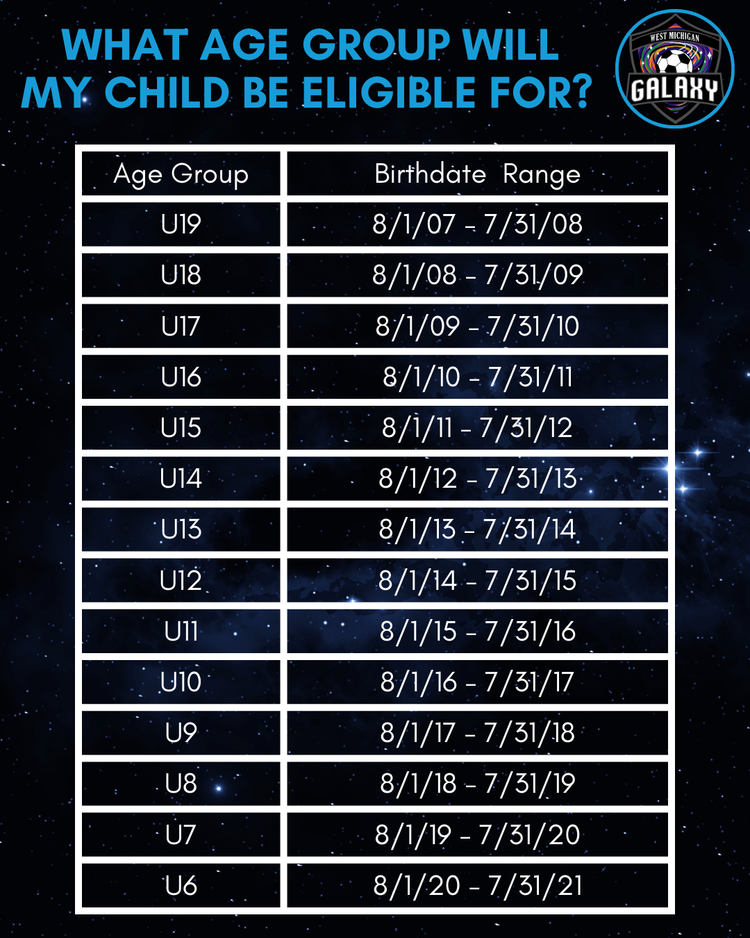 We’re here to help! If you didn’t find the answer you were looking for, please reach out to our team. We’re always happy to chat and make sure you feel confident about joining West Michigan Galaxy.